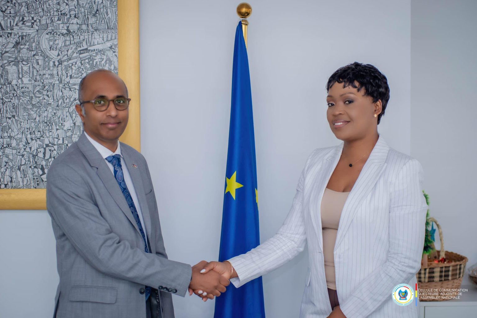La Questeure adjointe de l’Assemblée nationale, Grâce Neema Paininye, a rencontré, la semaine dernière à Kinshasa, Fabrice Basile, Chargé d’affaires ad intérim de l’Union européenne en RDC. La réunion s’est tenue au siège de la Délégation de l’UE, en présence de la conseillère Marie Makweri.