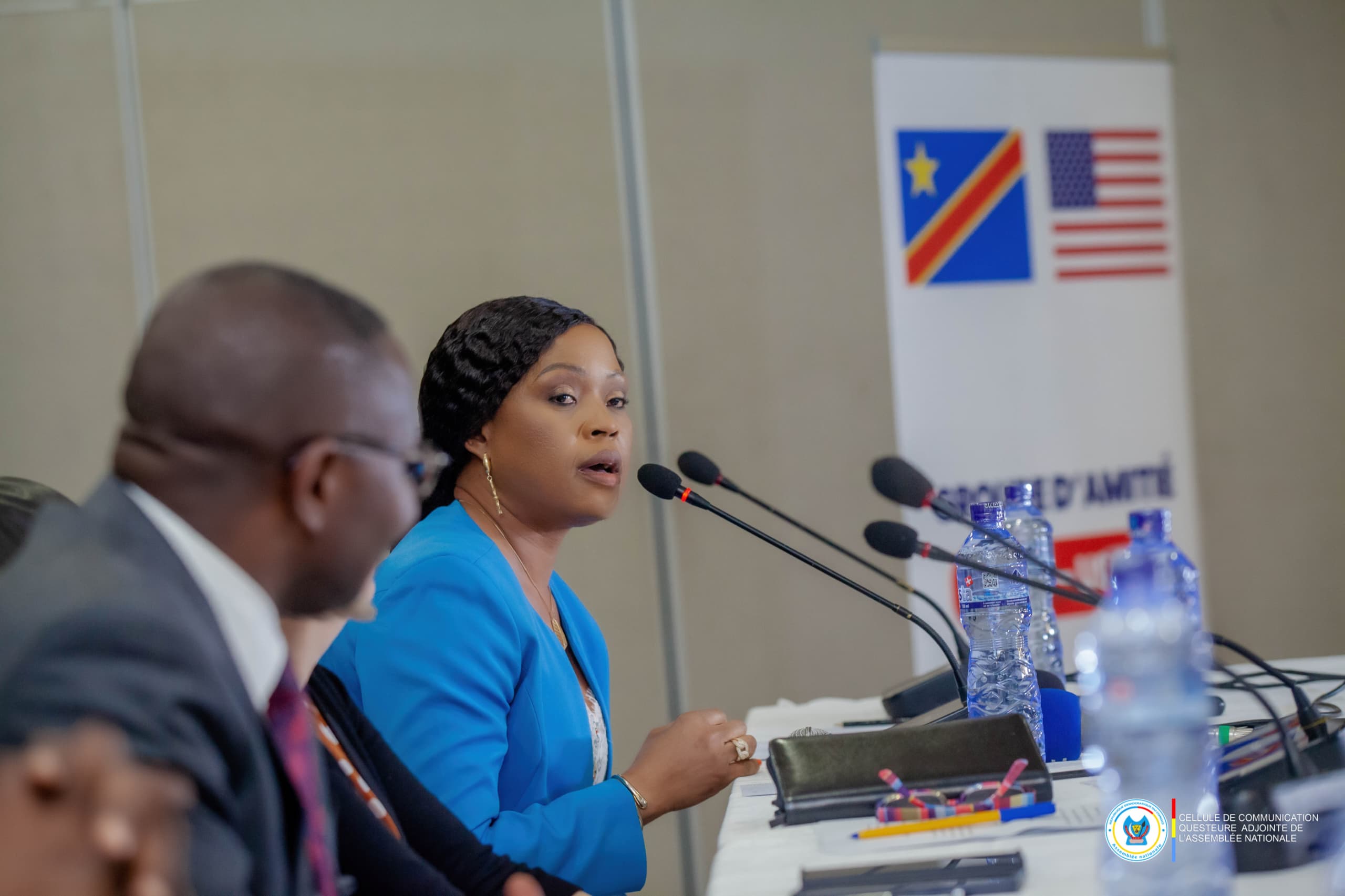 La Députée nationale et Questeure adjointe de l’Assemblée Nationale, Grâce Neema Paininye, a représenté le Président de cette Institution, Vital Kamerhe ainsi que tout son bureau, ce mercredi 18 juin, au Fleuve Congo Hôtel, à l’occasion de la rencontre d’échanges du groupe d’amitié RDC-USA.