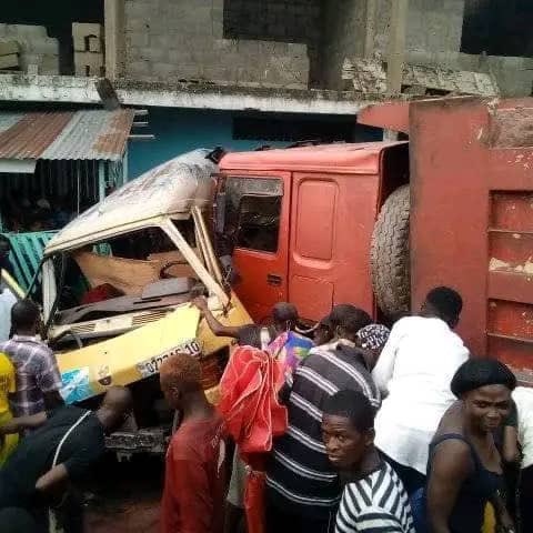 « Deux camions-bennes, l’un rempli de cossettes de manioc en provenance du Kongo Central et l’autre sortant d’un chantier sur l’avenue Luyeye après y avoir déposé du sable, sont entrés en collision. Deux passagers transportés par un motocycliste et un pousse-pousseur sont morts sur le champ. Un corps a déjà été transporté à la morgue et les deux autres traînent encore sur le lieu de l’accident », a témoigné Patrick Salu, un secouriste trouvé sur place.